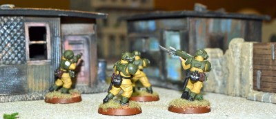 The scenario opportunities of these shanties are obvious. Already, we’ve played on scenario set on a desert world, with the shanties sprinkled among adobe buildings, that pitted rival Rogue Traders against one another. I could easily see an Inquisitor searching a slum area for mutants–or a kill squad hunting down an ork or a cultist leader.