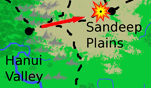 Spearheaded by Piranha skimmers that provided reconnaissance, the Tau approached the town of Sandeep Center, the regional capital, on the evening of 3 006 736.M41. Alerted to the xeno advance by orbital surveillance satellites, the Tau were met by a recently deployed battalion of the 18th Dar Sai PDF, under the command of Major Azrael Gann.