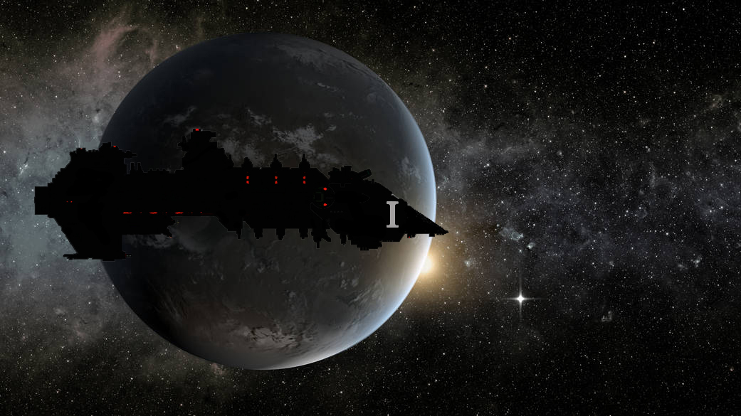In a long-forgotten star system far from the sector’s normal shipping lanes, an escort-sized spacecraft floats silently in the shadow of an unnamed planet. The ship is painted entirely in black, with the exception of a stark white “I” emblazoned on its bow.
