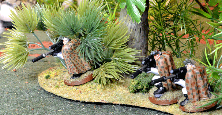 They wouldn’t find him. He was well hidden in the jungle foliage, and even if he’d been standing in the open, his silhouette at this distance would be no more than a half a centimeter tall.