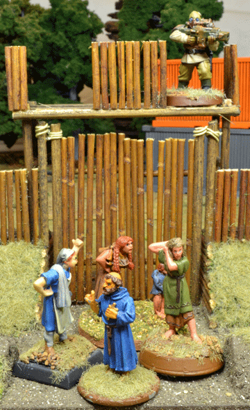A slave pit with prisoners and guard. Slavers often land on a pre-Industrial Age world that cannot defend itself from advanced weaponry. Using captured laborers, a primitive fortified base is established, and raids against nearby villages are conducted until a Slaver’s ship is filled with human cargo.