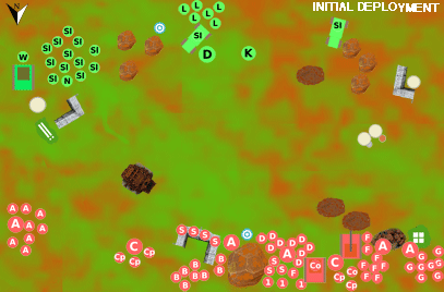 - West Flank: Company command squad in Chimera (multilaser); Second Platoon with command squad, 3 x infantry squads (Delta, Foxtrot, Gamma), special weapons squad (with snipers); Lemon Russ Tank