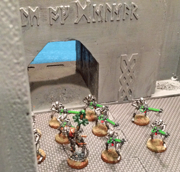 Led by Brother-Sergeant Quintas and his Knights, we entered the gate and followed a corridor that led deep into the hillside’s interior. After a few minutes walk, the black stone took on am odd black-green color, with etched hieroglyphics that glowed a sickly green.