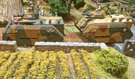 Lt. Adros and four guardsmen rode the lead Chimera; 2nd Squad, in reserve, rode in the second Chimera.
