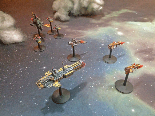 It was a sound plan. But the orks had timed their ambush well. There was little time to react, and rather than turn his undefended rear to the enemy, the patrol maintained its heading and fired a broadside at the ork ships.