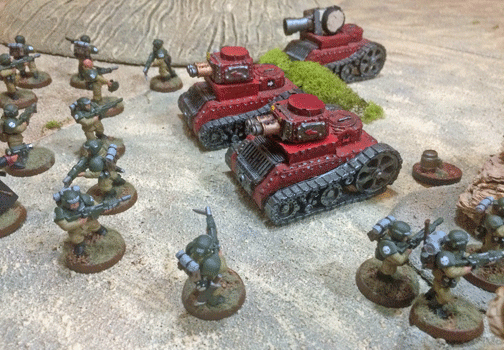Grot tanks and Imperial infantry fight a confused battle at the edge of a dangerous Warp-powered whirlwind.