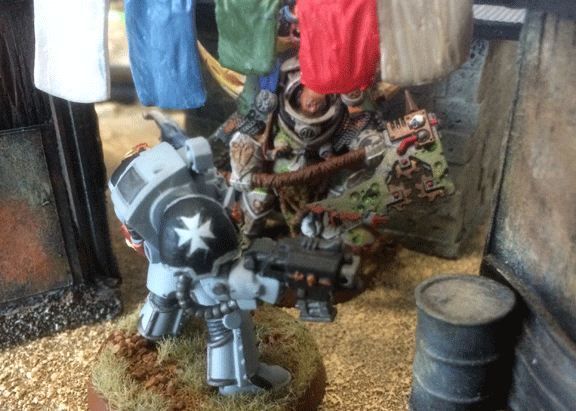 A veteran Space Marine meets Ghal Tak in mortal combat. Never has a more epic battle been fought beneath a clothes line.