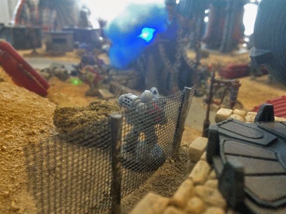 The traitors also fought hard against the main loyalist assault. As the Plague Fog floated toward the loyalists, Bhal Gaz stayed within its cover until several marine scouts were forced to move out of the fog’s way, when he rushed forward to shoot them down with his Plague Bolter.