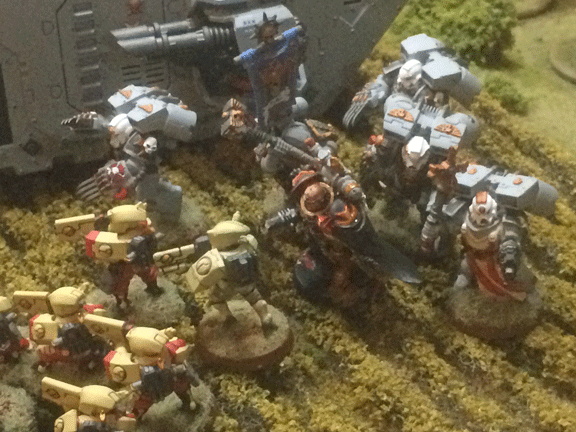 But, one Marine decides he can contribute somewhat. He pops out of the top hatch and fires his combo melta-boltgun and immobilizes a Devilfish that’s come alongside. ![]()