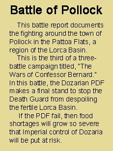 Unlike his opponent, Chaos Lord Ghaz Tak was confident of victory. He had overrun nearly two-thirds of the Pattoa Flatlands and, with the capture of the small city of Pollock, he would break the Imperial defenses once and for all.