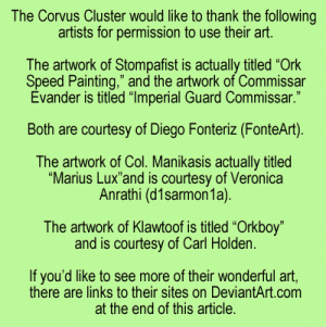 The Corvus Cluster is a Warhammer 40K blog documenting our gaming adventures in the fantastical sci-fi universe of Games Workshop.