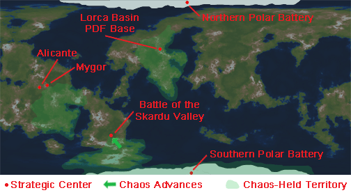 “At 07:07, an estimated 50,000 traitor soldiers launched an assault up the Skardu Valley in an attempt to take the city of Meradon, a strategically important manufactorum center and a key communications hub in the southern Tartarus Continent,” reported a Commissariat press release earlier today.