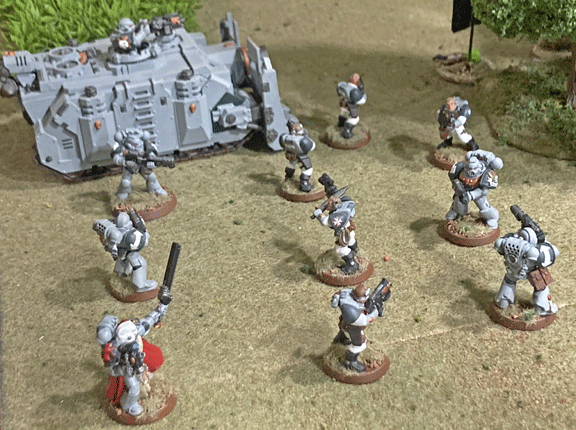 Supporting Marines maintained a defensive position—to the individual Astartes’ frustration—in order to screen the Vindicators from a “Deep Strike” by xeno battle suits.
