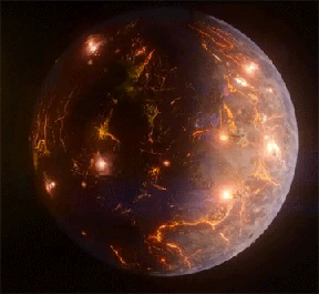In addition to frequent quakes, the surface is covered with active volcanoes that erupt and release sizable quantities of ash into the atmosphere and cover the landscape with flows of lava.