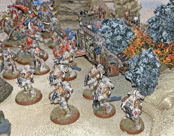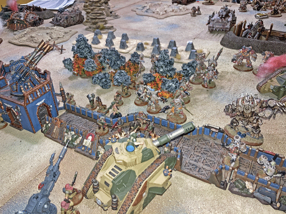 It proved to be true. More than 200 artillery units, equipped with Earthshaker cannon, laid a barrage atop the lead cultists and several large concentrations of Death Guard warriors.