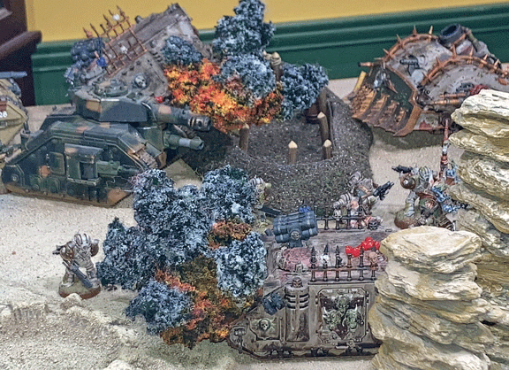 Although the traitors managed to overwhelm several outlying redoubts to their front, heavy defensive fire—supported by coordinated attacks by Imperial Navy bombers and gunships—proved overwhelming, and the traitor attack stalled about one kilometer short of the main trench line.