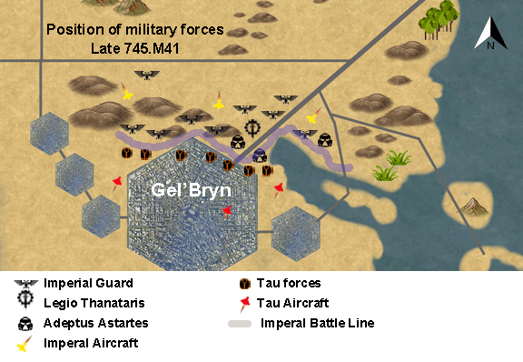 IMPERIAL VOXCAST ( 6 073 746.M41)—The latest dispatches from the Damocles Gulf Crusade report that Imperial ground forces have reached the outskirts of the Tau city of Gel’bren—but xeno resistance is fierce and the battle for the city remains ongoing.