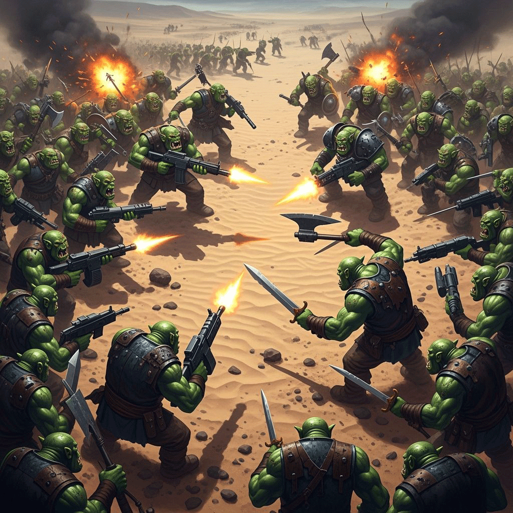 As senior Imperial military leaders observed from orbital surveillance satellites, the two ork armies met on an open field in a brutal clash without tactics.