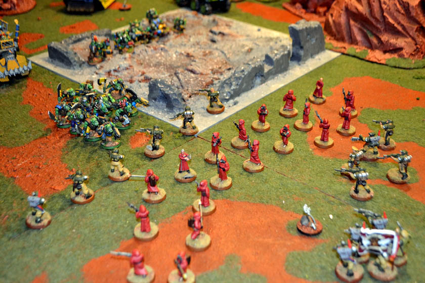 Disaster strikes! The honor of rolling for game’s end is offered to the ork commander, who rolls low—the battle goes another turn. Drat, thinks the Imperial commander. TURN SEVEN In the ork deployment zone, the Warlord arrived to take his revenge. His Rokkit Boyz deployed and fired upon the […]