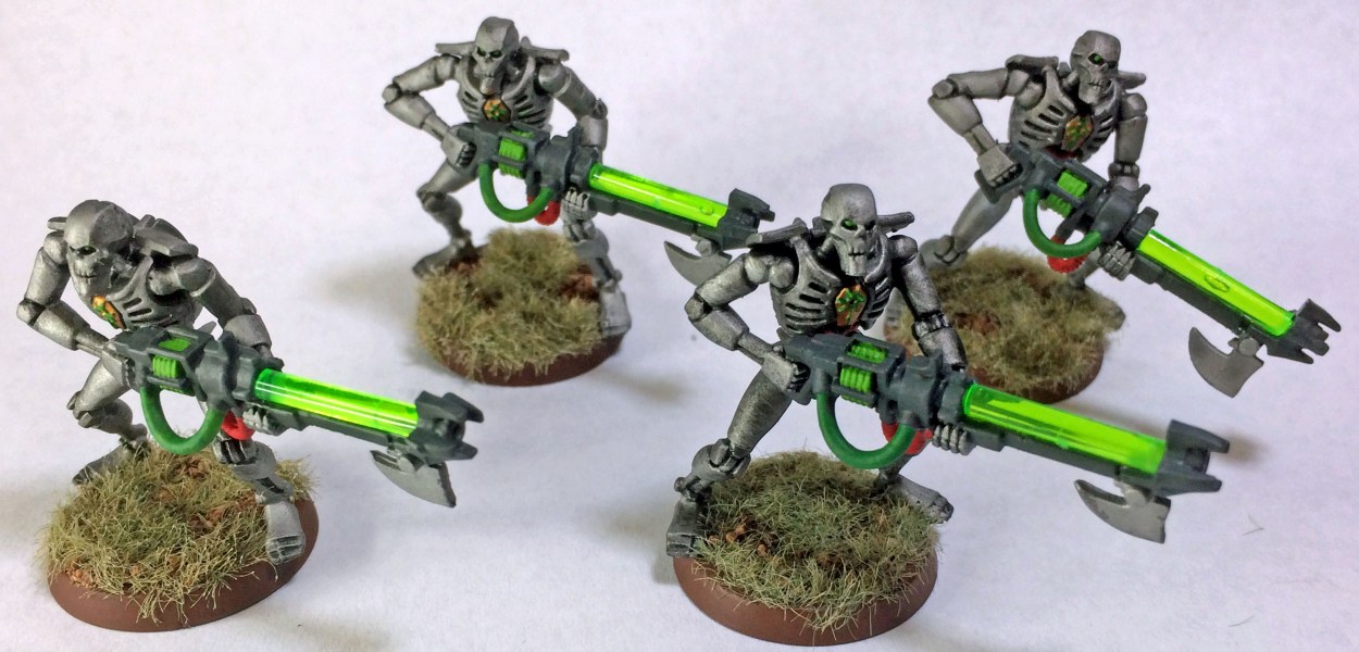 The second Necron unit to join the forces designed for my “Pyramids of Stigmata” convention game consists of six Canoptek Wraiths. There are painted using the same paint scheme as my Necron warriors (Painting: Necron Warriors), with a base color of Leadbelcher, followed by a wash of Nuln […]