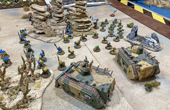 (IMPERIAL VOXCAST ( 3 977 743.M41)—More than 100,000 orks are battling among themselves in the ruins of the ork-held Tarak Mines, military authorities report. The fighting has been under way for nearly six days, and authorities are saying that this ork-on-ork battle likely indicates a serious challenge to […]